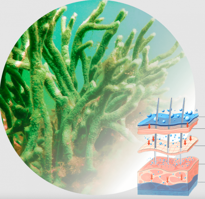 - Mořské řasy - jednou z nejpozoruhodnějších schopností řas je její schopnost okamžitě hydratovat pokožku. Řasy jsou bohatým zdrojem přírodních polysacharidů s prokázanou schopností zvýšit bariérovou funkci pokožky, doplnit přirozené zásoby vody v pokožce a zvýšit její schopnost zadržovat vlhkost. Řasy také produkují 60% kyslíku. Jsou silným antioxidantem, který detoxikuje a posiluje obranyschopnost pokožky proti celé řadě stresových faktorů.